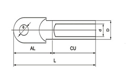 用途 :DTL系列銅鋁接線端子適用于配電裝置中各種圓型,半圓扇型鋁線,電力電纜與電氣設備銅端的過渡連接。使用鋁材為L3,銅材為T2。產品采用磨擦焊工藝制造,具有焊縫強度高,通電性能好,抗電化腐蝕,使用壽命長等等特點。